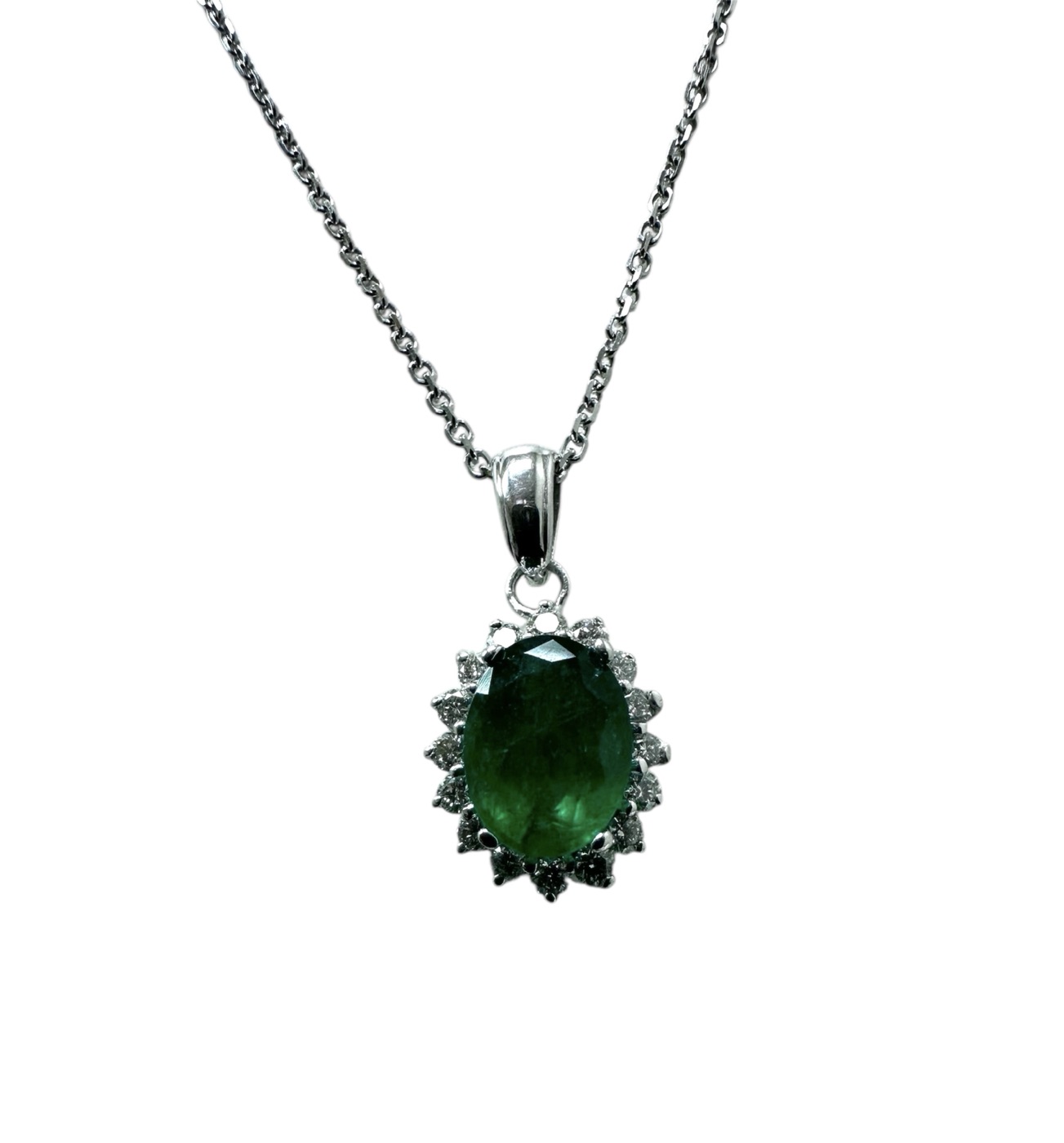 Emerald and diamond pendantEmerald and diamond pendant in 14k white gold
