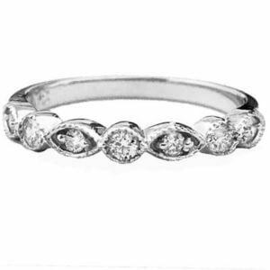 Mil grain round marquise diamond anniversaryThis 14 k diamond ring is available in white gold. The diamonds have a total weight of 0.20 carats. Diamonds are pave set. Diamond clarity is s i 2 and diamond color is g-h