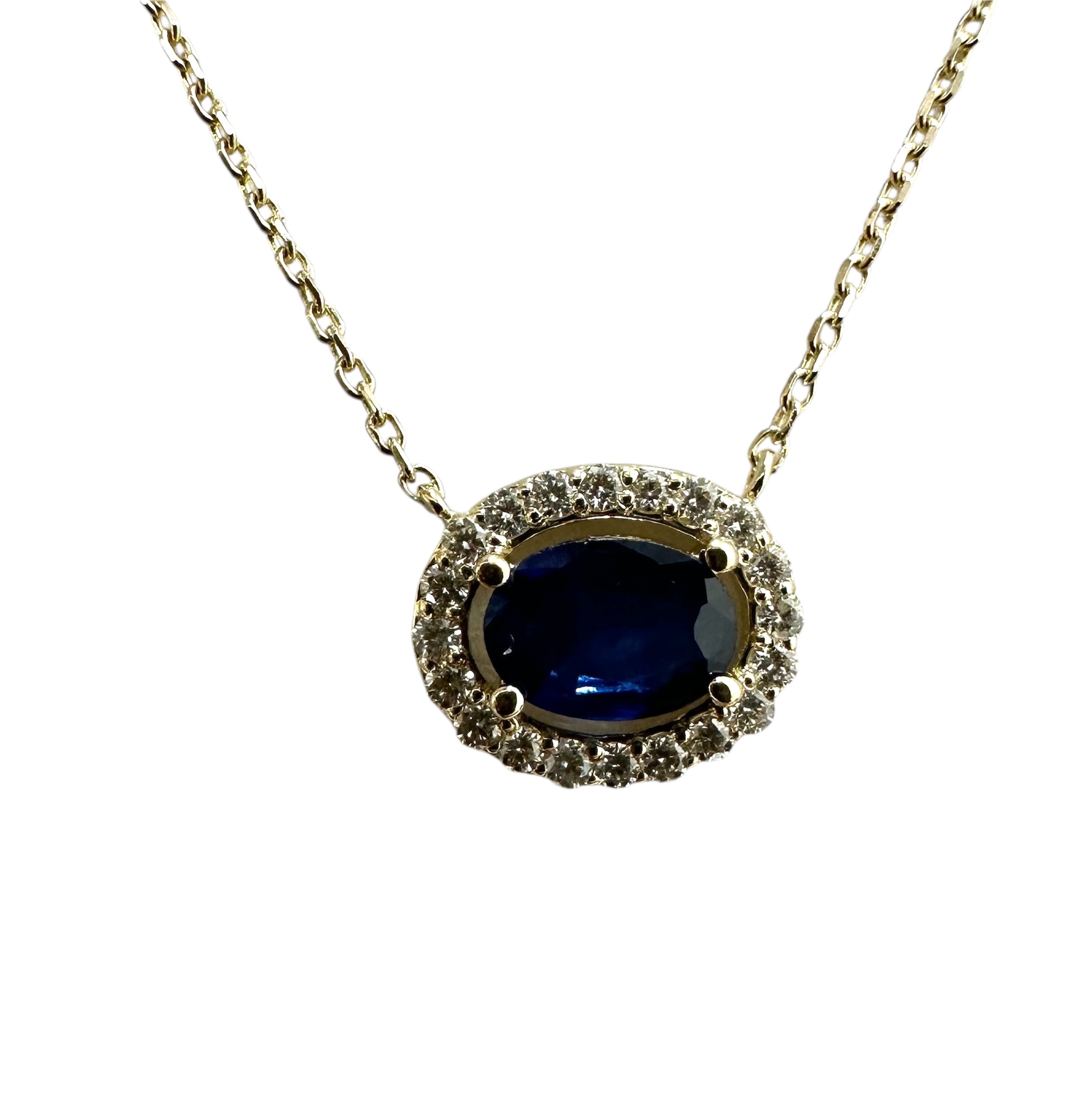 sideways oval diamond pendant, the gold is 14k-y. the sapphire weight is 1.75