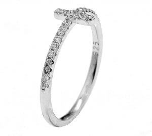 Small diamond cross ring in 14 k white and yellow gold. The number of diamond are 2. The diamond weight is .10 carat. The clarity of diamonds are S I 1. The colors are g-h. The finish on the white gold cross is rhodium.